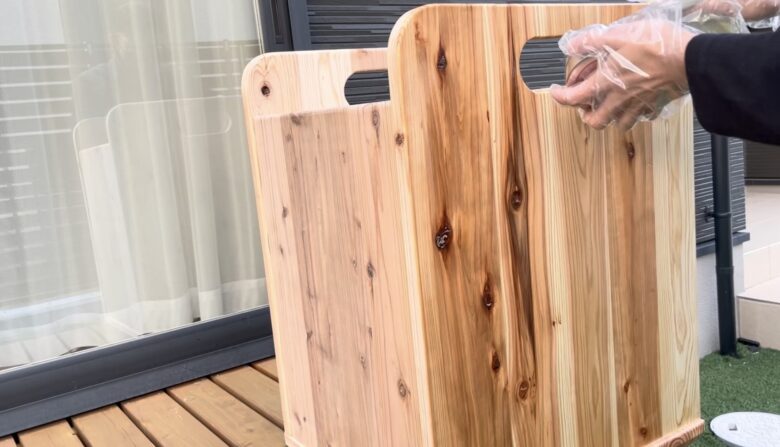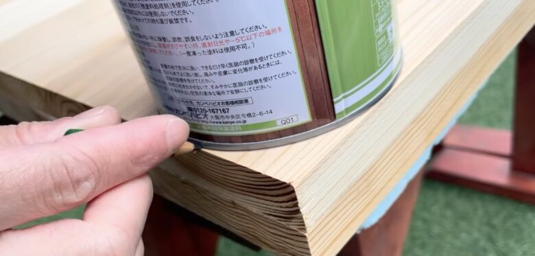 無垢材に塗ると木目が自然に際立ち、ナチュラルな雰囲気に仕上がるので本当に相性が良いです。