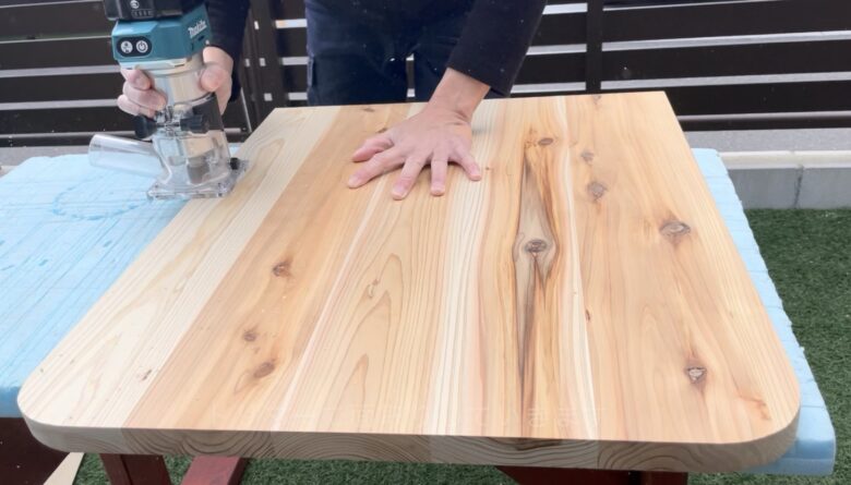 今回は柔らかい印象に仕上げたかったので、前板と背板の角を丸く加工していきます。