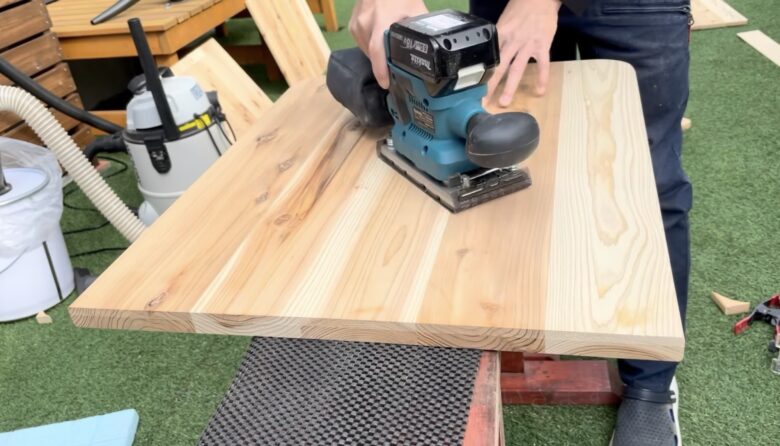 ベルトサンダーがあると早いのですが、私は持っていないため、荒い番手(#60〜)でしっかり削って仕上げました。