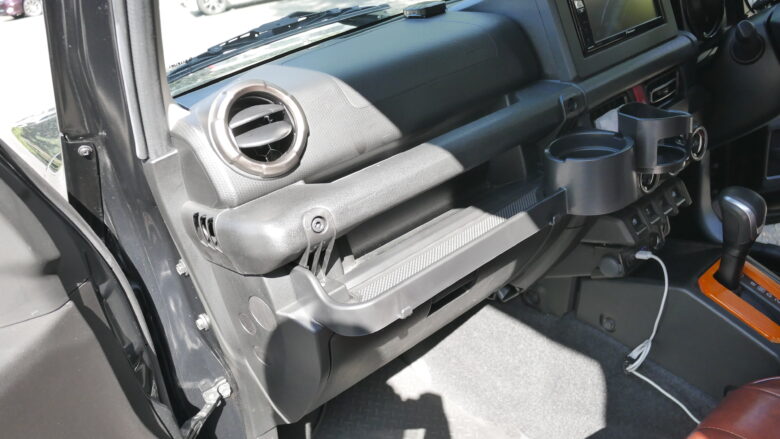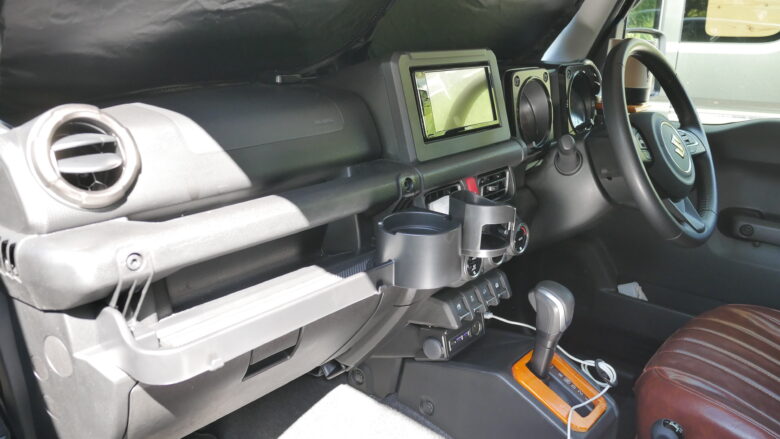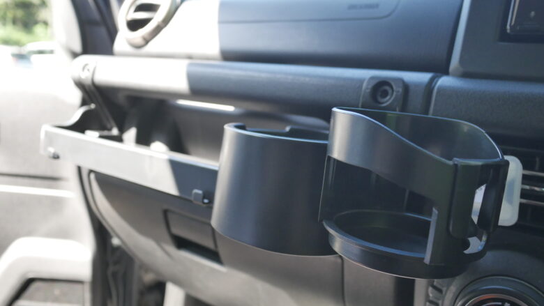 ジムニーの純正ドリンクホルダーは、運転席側の位置がやや低く、ペットボトルが取り出しにくいという声もあります。