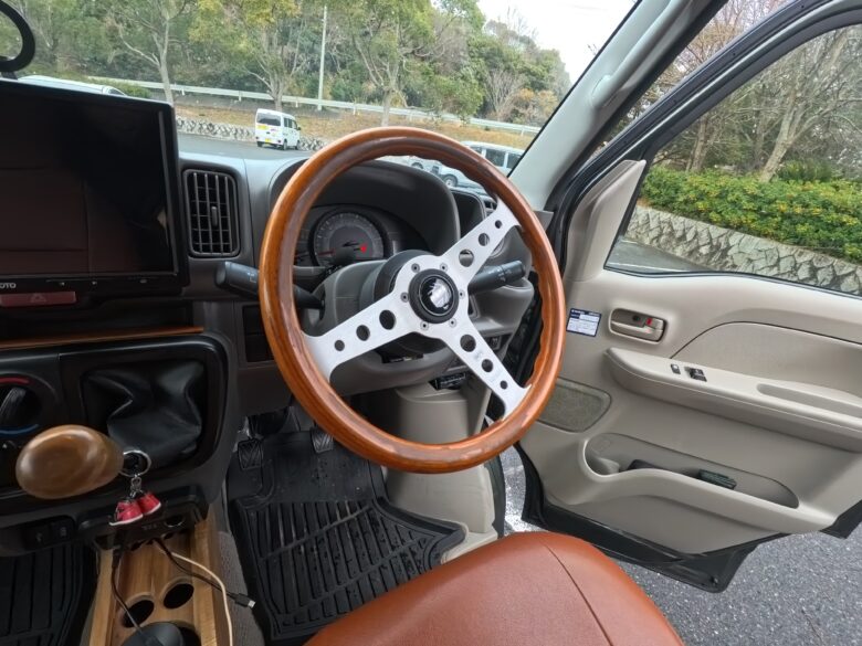 ステアリング|ハンドルも木製に