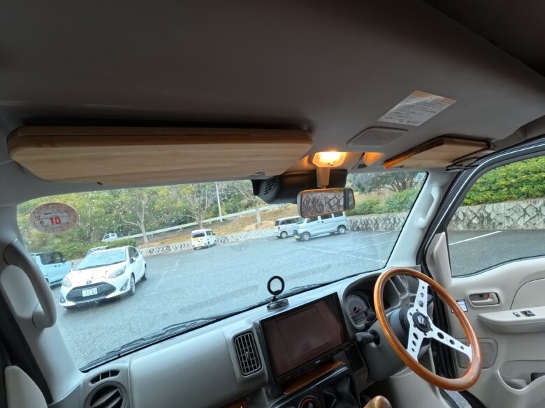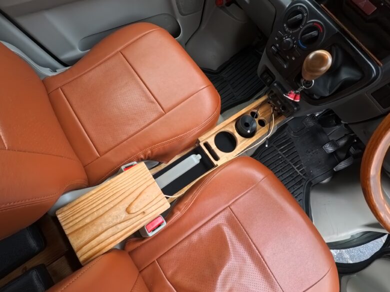- 木の質感で車内が一気に落ち着く