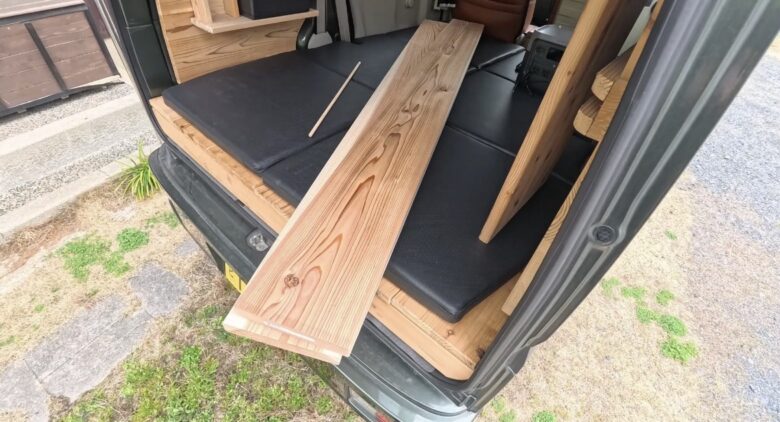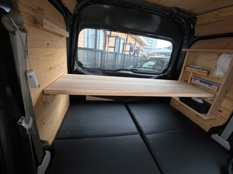 【エブリイDIY】無垢杉で荷室テーブル|車中泊も作業も快適に