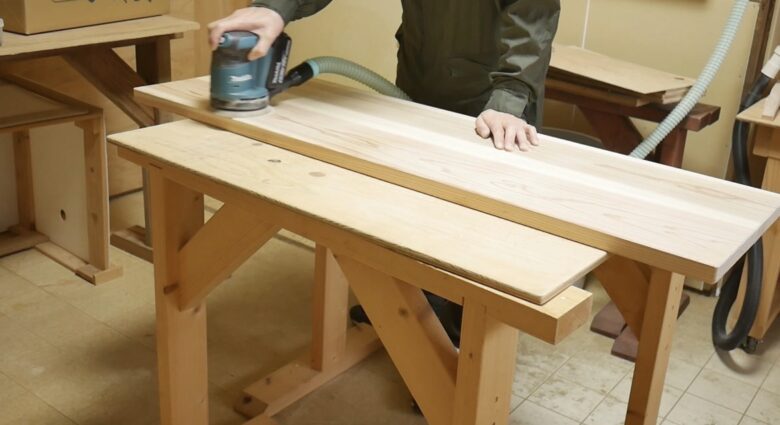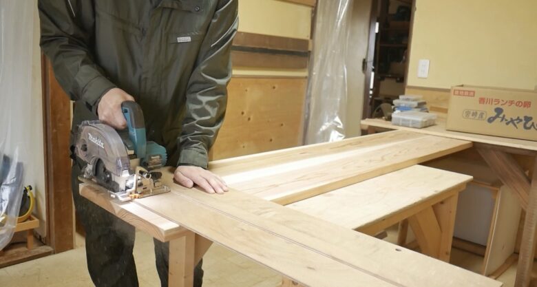 そう思い、今回は無垢の杉板を使ってロングテーブルを製作しました。