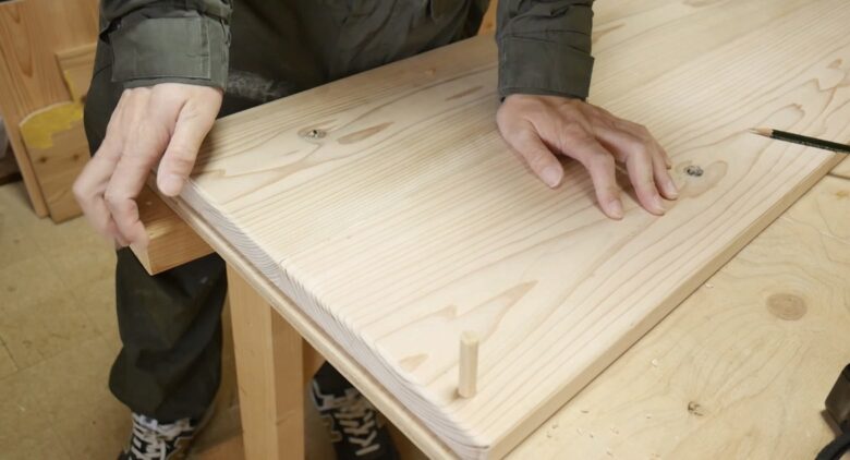 杉板を2枚接いで1枚の天板にする