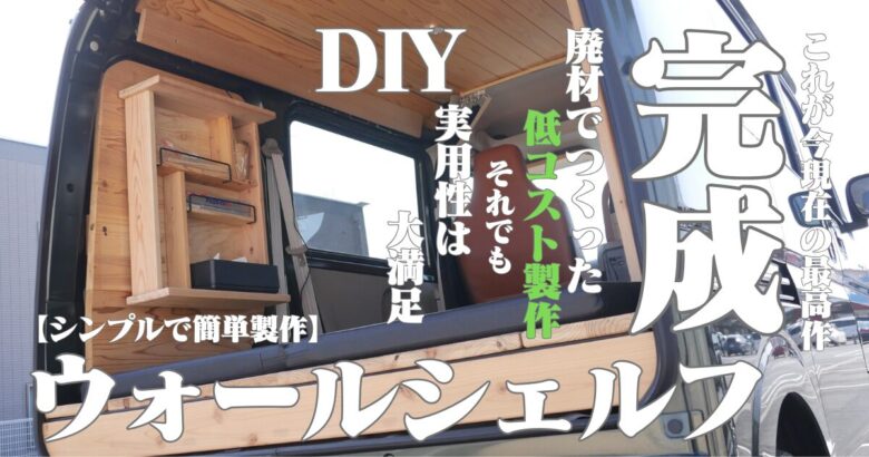 ヒノキ・マツ・スギの廃材を活用し、エブリイバンの荷室サイドにウォールシェルフをDIY。ティッシュやアルミシート、割り箸、紙コップなど、車内でよく使う小物をまとめて収納できる実用的な棚を製作しました。落下防止には百均のアイアンバーを使用。材料・構造・使い勝手まで詳しく紹介します。